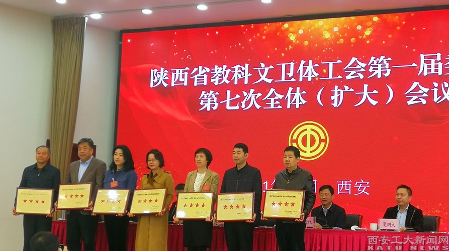(本网讯)近日,陕西省教科文卫体工会一届七次全委(扩大)会议在西安召开。会上表彰了一批省教科文卫体工会系统的先进集体和先进个人,我校获多项殊荣。 我校被评为“四星级厂务公开职代会单位”;光电工程学院工会荣获“模范职工小家”称号;校党委副书记王军周荣获“优秀工会之友”称号、校工会副主席周晔荣获“优秀工会工作者”称号、文学院工会主席薛龙荣获“优秀工会积极分子”称号。会上,校工会主席赵琼与西安财经大学...