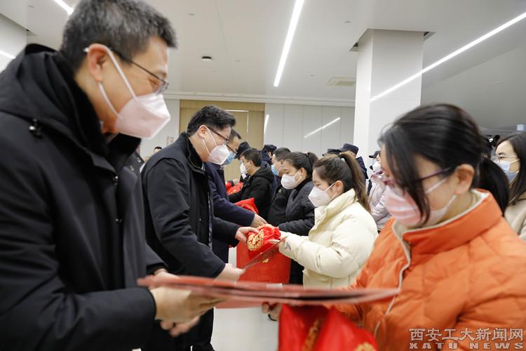 (本网讯)1月13日上午,陕西省总工会党组成员,省纪委监委驻省总工会机关纪检监察组组长强文哲,陕西省教科文卫体工会主席徐富权,省纪委监委驻省总工会机关纪检监察组三级调研员赵国强一行来我校看望慰问疫情防控一线、假期值班人员及困难教职工。我校党委书记刘卫国、校长赵祥模、副校长张群、陈建带领党校办主任及工会主席陪同慰问。强文哲一行来到未央校区图书馆大厅,亲切慰问了疫情防控一线及假期值班人员,为他们送来了...