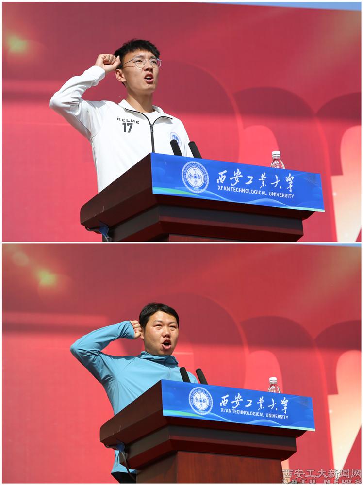 光电工程学院杨欣怡代表全体运动员宣誓。新生院公共体育系教师杨沛代表全体裁判员宣誓。
