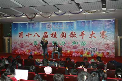 在主持人的介绍中,参赛的12位选手闪亮登场,古典与现代的结合让在场观众耳目一新,选手的自我介绍更加显示了他们的自信与魅力。大赛以一首《恰似你的温柔》开始,歌手们展开了激烈的角逐。每个选手各具特色,充分发挥了自己的水平,唱出了各自对音乐的诠释,其中还包括由学生自己创作的歌曲。外语系赵蓉同学的《回家》将全场的气氛推向了高潮,掌声响彻整个会场。