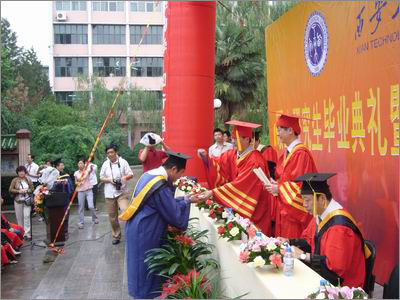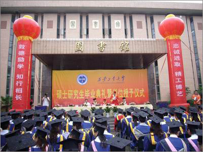 5月31日,我校2007届硕士研究生毕业典礼在金花校区图书馆前隆重举行。参加典礼的有校党委书记赛云秀、校长刘江南、副书记简林根、副校长张君安、刘卫国、校长助理陈桦以及部分导师和全体研究生。典礼由校长助理研究生部主任陈桦教授主持。首先,刘卫国副校长代表学校学位委员会宣读了2007届授予硕士学位研究生名单,接着由刘江南校长、刘卫国副校长共同为毕业研究生们颁发了学位证书。今年,我校共有188名同学顺利的通过了论文答辩,获得了硕士学位。经过校学位委员会的评审,产生优秀硕士论文21篇。张君安副校长宣读了优秀硕士论文名单。校领导共同为优秀硕士论文获得者颁发了荣誉证书。随后导师代表容晓峰副教授、学生家长代表郭安江、毕业生代表杨玲同学分别做了精彩的发言。最后,校长刘江南教授进行了总结发言,他对同学们过去三年的表现以及取得的成绩给予了充分的肯定,并给即将毕业的研究生提出了新的要求和期望。