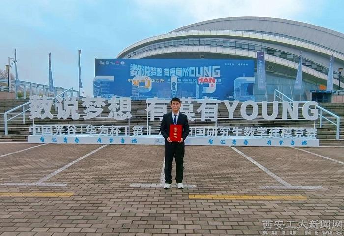 (本网讯)3月19日,“中国光谷·华为杯”第十九届中国研究生数学建模竞赛在武汉华中科技大学举办,我校研究生荣获国家级一等奖1项、二等奖9项、三等奖12项。一等奖获得者光电学院研究生李越同学代表我校获奖队伍参加了本次颁奖典礼。本年度我校参赛队伍一等奖获奖比例为1.89%,高于大赛平均获奖比例(大赛平均获奖比例为1.10%),总获奖比例达42.3%,一等奖获奖数位居陕西高校并列第2位。