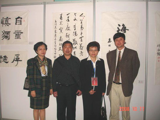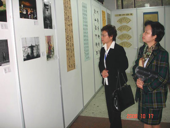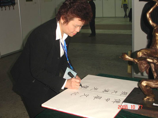 詹秀蓉女士在学校国际交流与对外合作处和学校侨联负责人陪同下在金花校区饶有兴趣地参观了由陕西省教育厅主办、本校艺术学院承办的陕西省第二届大学生书画展,对陕西省大学生尤其西安工大学生的书画作品给予了很高评价。在与校艺术学院暨书法系老师和学生的交流中,詹秀蓉女士激动地说:看到规范的书法专业设置,感受到了大陆对中国书法文化的重视;看到大陆学生的优秀的书画作品,就看到了中华文化传承的希望所在。她在留言薄上题写下:“传中华文化,振大汉天声”,表达自己心情和对学生的希望。随后她还同老师及在全国书法比赛获奖的学生合影。