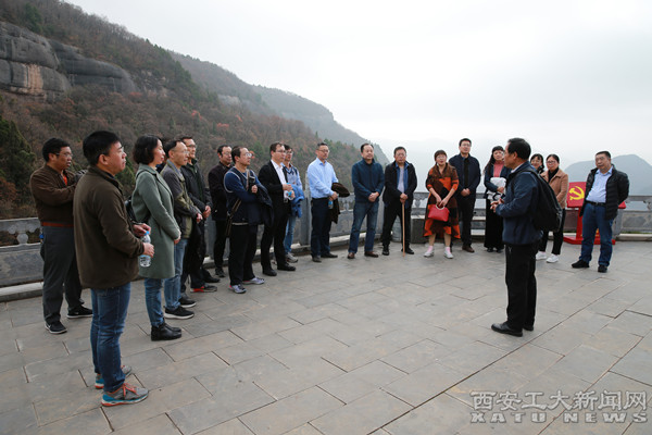 秋日的照金天高云淡,风清气朗,红叶点染,宛如画境。29日早,大家首先来到薛家寨革命旧址,在陡峭的山间拾级而上,亲身体验革命先辈坚持革命斗争的艰难困苦。在半山的一处平台上,我校马克思主义学院教授、知名党史研究专家田亮现场讲述了薛家寨保卫战的历史故事。聆听完田亮教授的讲述,在场人员无不对革命先辈在恶劣的条件下坚持斗争的信仰、勇气与智慧表示敬佩。