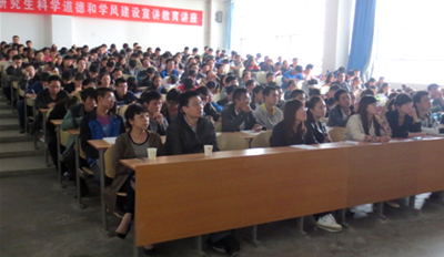 首先,雷亚萍副校长强调了此次宣讲的重要性。她指出:科学道德和良好学风是大学精神的集中体现,是高校的立校之本、发展之魂,加强科学道德和学风建设,是全面提高高等教育质量的必然要求。同时,她提出研究生参加宣讲将与学分挂钩,要求全体研究生积极参加并认真学习。