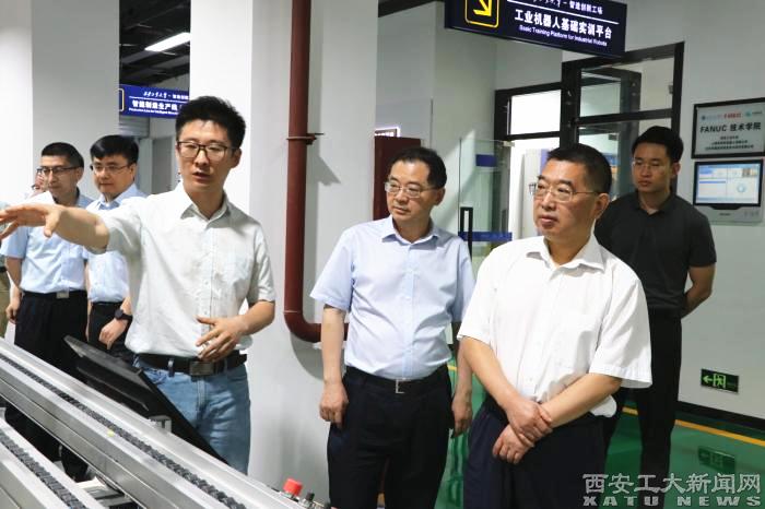 在校长赵祥模和副校长陈建的陪同下,袁宏明一行参观了校史馆,智造创新工场,科技部先进制造与光电检测国际科技合作基地、薄膜与光学制造技术省部共建教育部重点实验室、陕西省薄膜技术与光学检测重点实验室、陕西省特种加工重点实验室,国家地方联合工程研究中心轻合金精密成型中试基地。