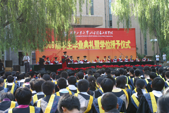 (本网讯)“我们今天是桃李芬芳,明天是社会的栋梁;我们今天是弦歌在一堂,明天要掀起民族自救的巨浪!”在催人奋进的《毕业歌》旋律声中,【官网入口】星空体育登录页面,一键快速登录北方信息工程学院2009届学生毕业典礼暨学位授予仪式于6月30日在金花校区隆重举行。校长、北信学院董事长刘江南出席仪式,校教务、办公室、学生处负责人应邀参加,北信学院党委书记简林根、副书记王大明、副院长李建安、薛虹及学院各相关部门领导、教师代表、辅导员等参加了仪式。