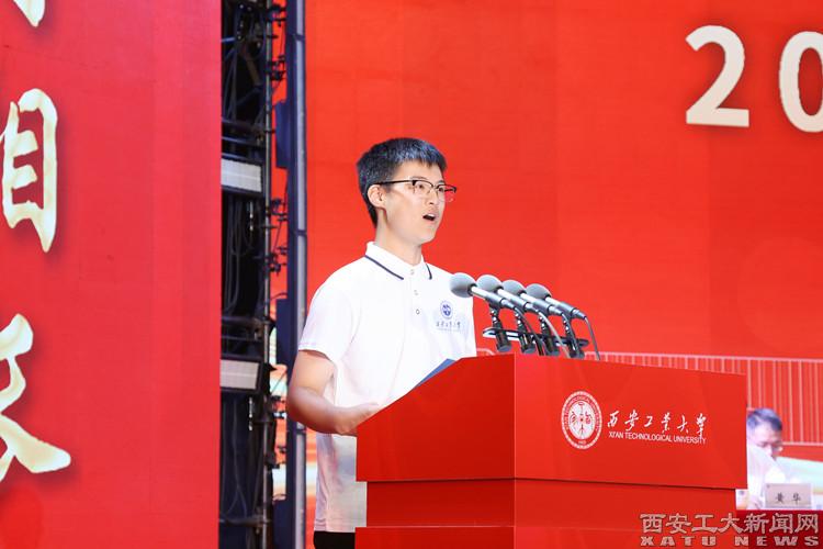 本科生新生代表、计算机科学与技术专业陈泽凯表示,在未来的四年里会与大家一起,用汗水浇灌梦想,用奋斗书写青春,力争成为在军工行业服务国家建设和社会发展的复合型人才,为中国式现代化建设贡献青春力量。