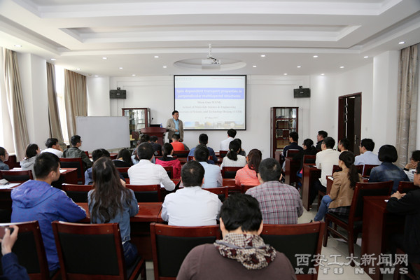 (本网讯)5月8日,中国电子学会应用磁学分会秘书长、北京科技大学博士生导师王守国教授应邀莅临我校作题为《垂直各项异性磁性多层膜及自旋相关输运性质的研究》的学术报告。