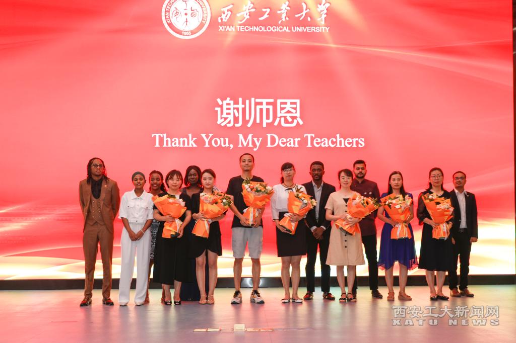 毕业生向张丽丽等7名教师代表鲜花,向各位老师的辛勤付出表示感谢。