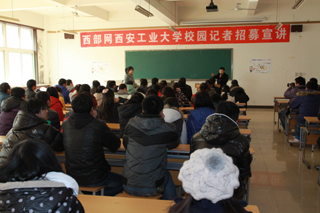 宣讲会上,西部网新闻中心总监刘晓斌围绕什么是校园新闻、如何做好一名校园记者等话题与现场的同学们进行了互动和交流,气氛轻松活跃。西部网新闻编辑欧阳详细地介绍了此次校园记者招募的要求和流程。经过近一个半小时的讨论和交流,宣讲会在同学们热烈的掌声中落下帷幕。现场数十名同学都积极报名参加。