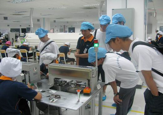 实践队员在湘潭爱铭数码有限公司生产一线实地参观