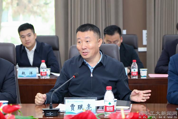 贾珉亮对学校的精心安排和热情接待表示感谢,并充分肯定了学校近年来的取得的重大成绩,高度赞扬了学校想干事、能干事、干成事的决心。他表达了与学校在多领域,多层次全面合作的意愿。他指出,咸阳市是秦创原成果转化的先行区,多项先进技术成功转化落地咸阳,氢能创新园项目的建设能够为校企提供广阔的政策空间、场地资源和资金需求,期待市委市政府和学校面向未来产业,锚定前沿科技,进行全方位更高层次的交流合作。