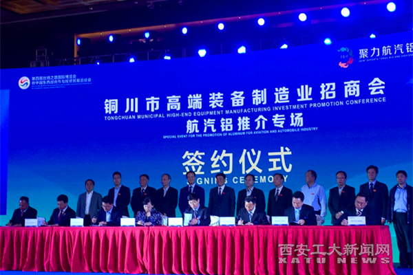 (本网讯)5月11日,在西安召开第四届丝博会期间,铜川市委、市政府举办了以“聚力航汽铝 迈向中高端”为主题的“高端装备制造业——航汽铝专场推介会”。在铜川市经济转型发展中,为着力打造航汽铝高端装备制造业,建设高质量的现代工业产业体系,根据铜川市的产业布局、资源优势及发展愿景,铜川市与陕西省汽车工程学会、陕西重型汽车有限公司等陕西省大型国有企业,联合长安大学、【官网入口】星空体育登录页面,一键快速登录、西安建筑科技大学的技术优势,共同成立“陕西(铜川)汽车轻量化材料制造创新中心”,旨在充分发挥各自优势,助力实现“陕西制造、铜川配套”。校长雷亚萍代表学校出席了签约仪式。