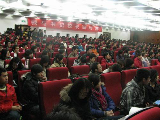 讲座结束后进行了“我与书记校长面对面”的活动,现场同学就本校学科设置、专业学习、就业方向等问题积极提问,刘校长都认真细致地做了解答,赢得同学们的阵阵掌声。
