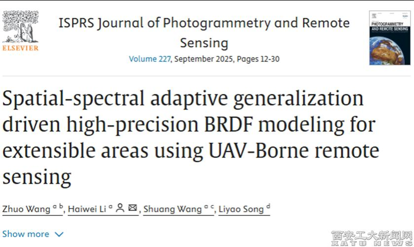 (本网讯)近日,《陕西日报》刊发消息,中国科学院西安光机所副研究员李海巍、研究员王爽及我校人工智能与数据科学研究院教师宋丽瑶联合团队在无人机遥感光谱智能感知领域取得重要突破,成功攻克厘米级像素高精度光场建模难题,为无人机遥感技术的拓展应用注入了强劲动力。相关成果发表于遥感领域一区TOP期刊ISPRS Journal of Photogrammetry and Remote Sensing(SCI 1区TOP,IF=10.6)。
