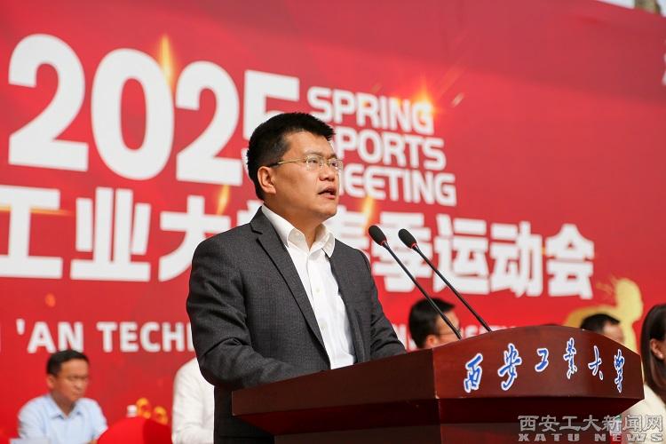 姚尧致开幕词,代表学校对运动会的开幕表示热烈祝贺,向所有运动员、教练员、裁判员及工作人员表示衷心感谢和亲切问候。他指出,体育铸魂强魄,运动固本培元。体育教育是国家体育事业的重要组成部分,也是学校人才培养的重要方面。他强调,今年的运动会,是在学校建校70周年之际召开的一场体育盛会。这场盛会,不仅是全体师生运动水平的精彩角逐、精神风貌的集中展示,也是学校以兵工精神铸魂,以红色基因育人的生动课堂。希望各代表队和全体运动员能够发扬奥林匹克精神,展现良好体育道德风尚,比出风格、赛出水平;希望全体师生能够在拼搏和竞技中传承兵工人永不言弃的坚韧,在团结和协作中彰显青年人勇立潮头的担当,以西工七十载薪火相传的历史加速度奔赴教育强国建设的新征途。