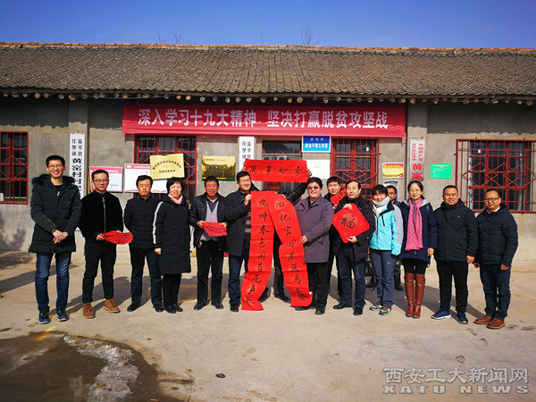 会后,于孟晨代表学校向黄窑村赠送了由我校艺术与传媒学院师生创作的春联,向驻村干部送去生活慰问品。学校相关部门还为贫困户送去了慰问金、粮油等年货和美好的新春祝福。