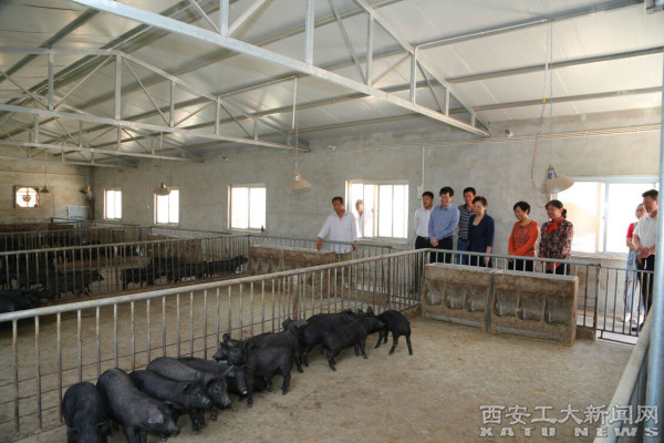 会后,刘卫国、雷亚萍一行来到了黄窑村我校扶贫建立的养猪场,实地查看了猪舍、饲料存放区以及养殖人员生活区,对这个现代化养猪场的建设和生猪养殖的现况给予了充分的肯定。