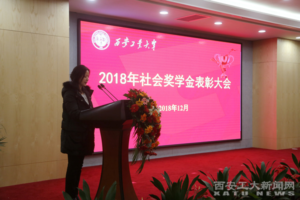 吴介军宣读了社会奖学金表彰决定。今年我校社会奖学金奖项增至19项,创历史新高,共有447名本科生、研究生获此殊荣。