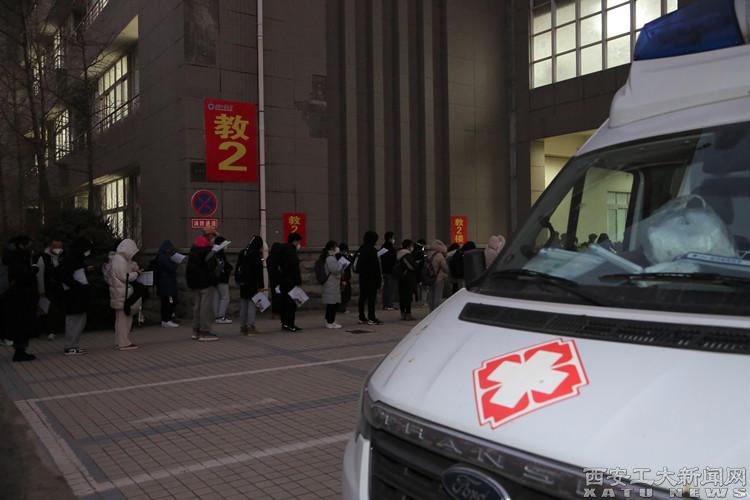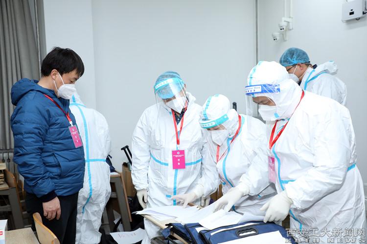 同时,联系确定10台送医车、1台救护车全天候备勤,并准备足量N95口罩、紫外线消毒灯、退热止咳药等物品。在考场附近设置临时医务室,布置临时病床,预设医疗药品、用具,选派充足的医务工作人员。安排心理咨询老师,处理考试期间学生突发的情绪波动问题,做好心理疏导,保证考试的顺利实施。