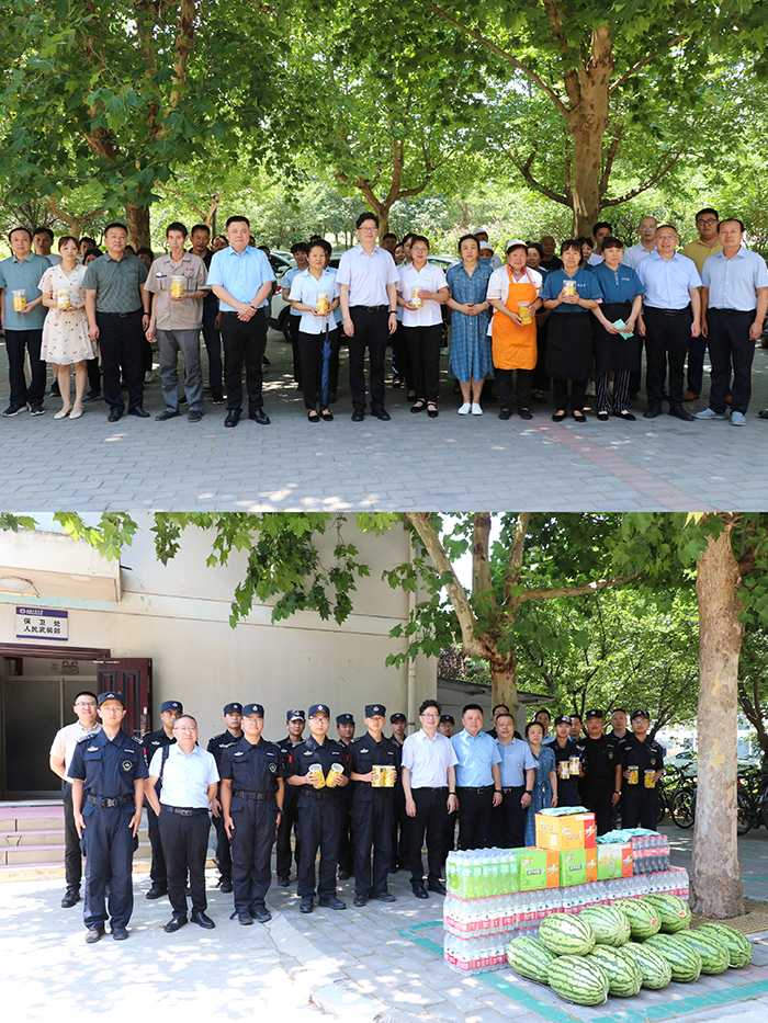 (本网讯)烈日炙烤,酷暑难当。7月18日下午,党委书记刘卫国,校长赵祥模,党委副书记梁云鹤,副校长张群看望慰问了在高温酷暑中坚守岗位的教职员工,为奋斗在一线的他们送上防暑降温物品。