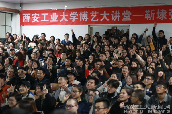 讲座现场座无虚席,可以容纳200人的报告厅挤进了近400人,讲台上和通道里都挤满了听众。靳埭强先生设计思想所具有的巨大魅力,为我校的艺术与设计教育注入了活力与激情。