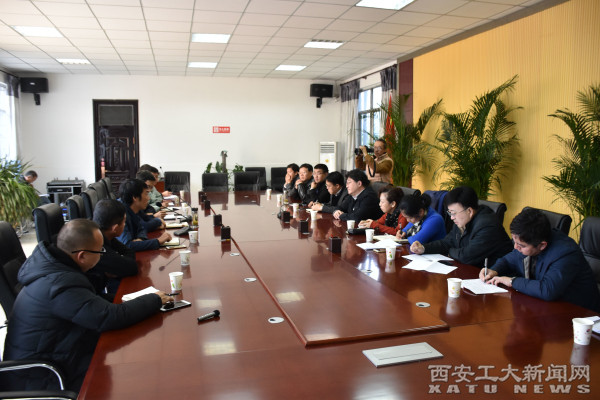 富平县科技局局长李超军、我校科技处处长彭渝丽、中冶陕压重工设备有限公司技术人员汇报了我校科技帮扶的具体工作及取得的进展。庄里镇党委副书记田军、我校研究生院副院长惠增哲汇报了我校研究生助力脱贫攻坚的具体情况,以及下一步的计划。田军对我校派往庄里镇开展助力脱贫工作的研究生给予了充分的肯定,并赠送牌匾。