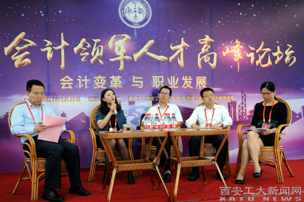 (本网讯)9月23日,由我校科技处和经济管理学院承办的2017全国会计领军人才高峰论坛成功举办。论坛以“会计变革与职业发展”为主题,来自全国各地不同领域的17位行政事业类、行业类、企业类全国领军人才代表齐聚西安。省财政厅副巡视员王素文,校长雷亚萍、副校长陈桦、总会计师段小存、校长助理刘卜出席。