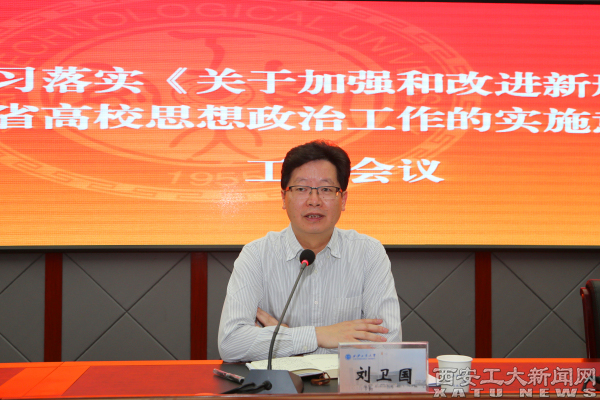 (本网讯)9月1日,我校在学术报告厅召开学习落实《关于加强和改进新形势下全省高校思想政治工作的实施意见》工作会议。校党委书记刘卫国,校长雷亚萍,校党委副书记于孟晨、吴介军出席。会议由吴介军主持。