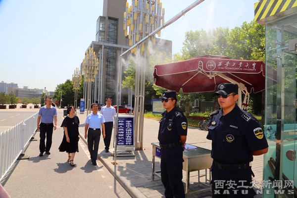 (本网讯)近日,西安骄阳似火、持续高温,最高气温达40度以上。学校保卫人员冒高温、战酷暑,坚守在校园安保第一线。7月11日,副校长刘发林、工会副主席曲敏亲切慰问了坚守在一线的保卫人员。