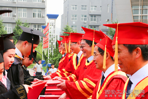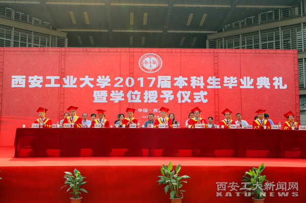 (本网讯)7月4日,学校2017届本科生毕业典礼暨学位授予仪式在未央校区经纬广场隆重举行。校长刘卫国出席毕业典礼并讲话,党委副书记于孟晨,纪委书记郑建山,副校长赵红星、陈桦、刘发林、张守华,总会计师段小存,校长助理李强出席。