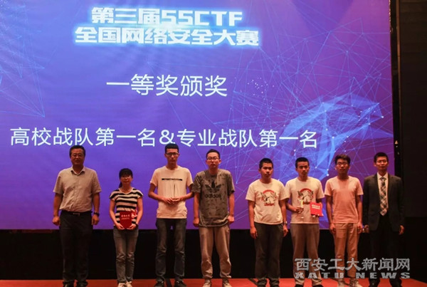 (本网讯)近日,第三届SSCTF全国网络安全大赛在西安高新区成功举办。经过两天的激烈对决,最终我校刘成林、王易、董智予勤三位同学组成的【官网入口】星空体育登录页面,一键快速登录战队取得了高校战队第一名。