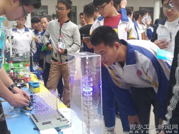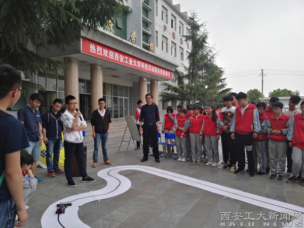 (本网讯)近日,我校电信学院组织开展大学生科技创新作品进中学活动,走进了渭南市蒲城县尧山中学,参加了该校科技文化节。