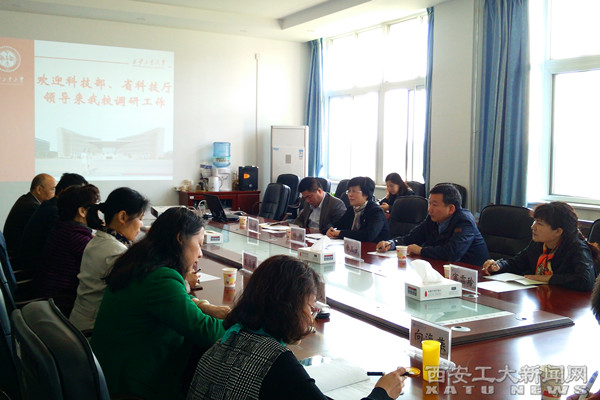 (本网讯)4月13日,科技部政策法规司副巡视员唐玉立、陕西省科技厅总工程师杨柳、政策法规处处长王军、社会发展处副处长富雪玲一行莅临我校进行调研。副校长雷亚萍出席调研座谈会。