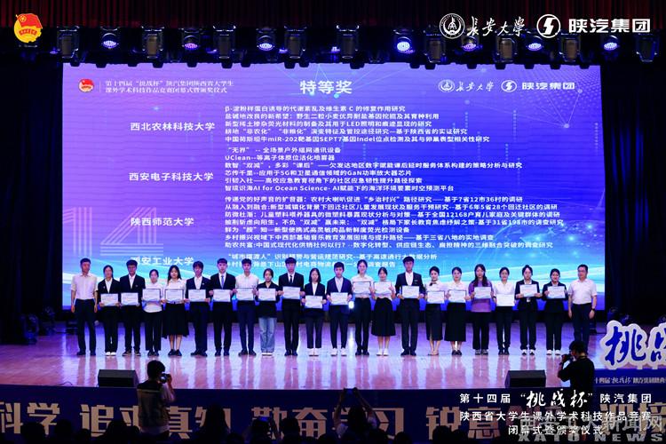 在本届大赛中,学校获奖等次和数量“双提升”。我校《“城市摆渡人”识别预警与营运规范研究--基于高速通行大数据分析》《乡村振兴背景下山区农村电商物流最后一公里调查报告》2个项目荣获特等奖,特等奖获奖数量在省属高校位居前4;《国际领先的超低功耗阻变存储器》等6件作品获一等奖,《DS级工业射线底片数字化成像装置与智能评估系统》等2件作品获二等奖,《虫口夺果—一种基于自动识别虫害的智能喷赛人》等2件作品获三等奖,学校获大赛“优胜杯”。1支项目团队负责人获得陕汽集团就业签约邀请函,同时学校被确定为第十五届“挑战杯”陕西省大学生课外学术科技作品竞赛的承办单位。