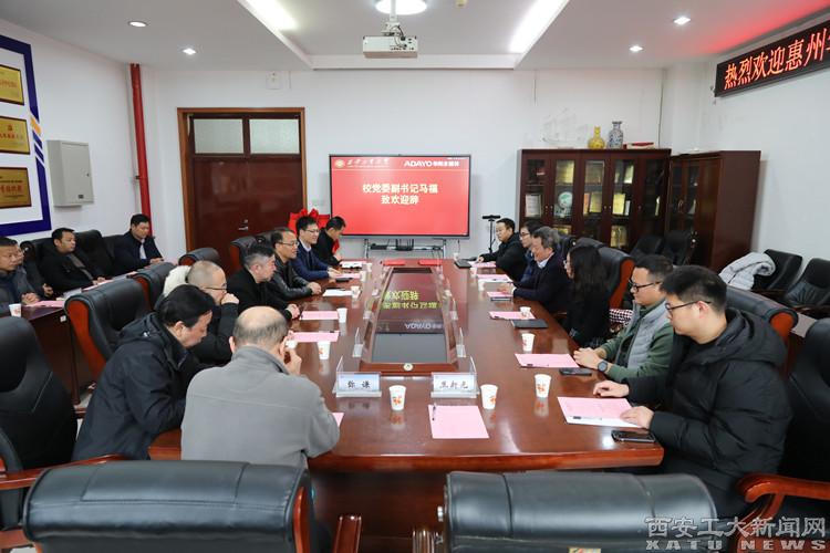 (本网讯)1月3日,惠州华阳集团副总裁、惠州市华阳多媒体电子有限公司董事长韩继军一行来校,就设立“华阳多媒体奖学金”和平视显示系统(HUD)研发中心等事宜进行深入交流研讨。校党委书记刘卫国会见了韩继军一行,双方进行了亲切交谈。