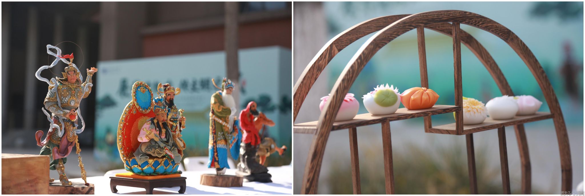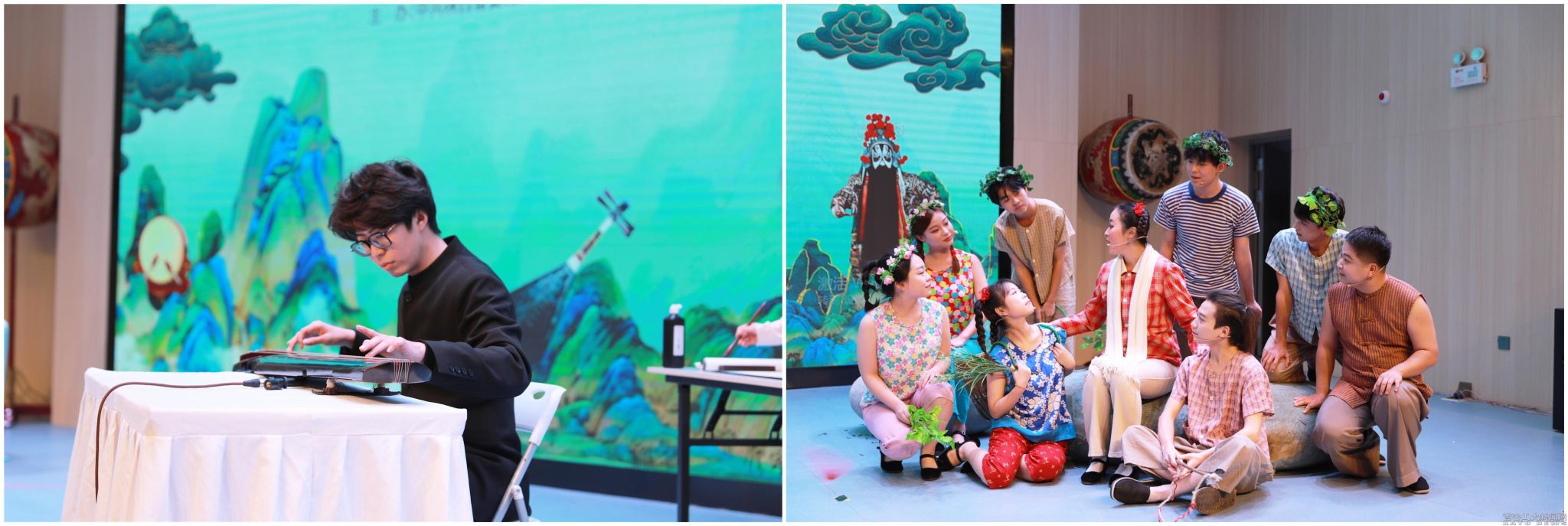 非遗传承人乔鼓利老师和王变红老师向在座师生展示杖头木偶戏《西游记-敢问路在何方》、提线木偶《欢乐的小货郎》。非遗传承人党莉莉老师展示的戏曲容妆项目,再搭配上高楠老师作的长嘴壶茶艺展示,为整场节目增添了感染力。