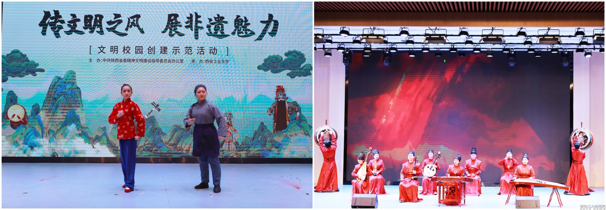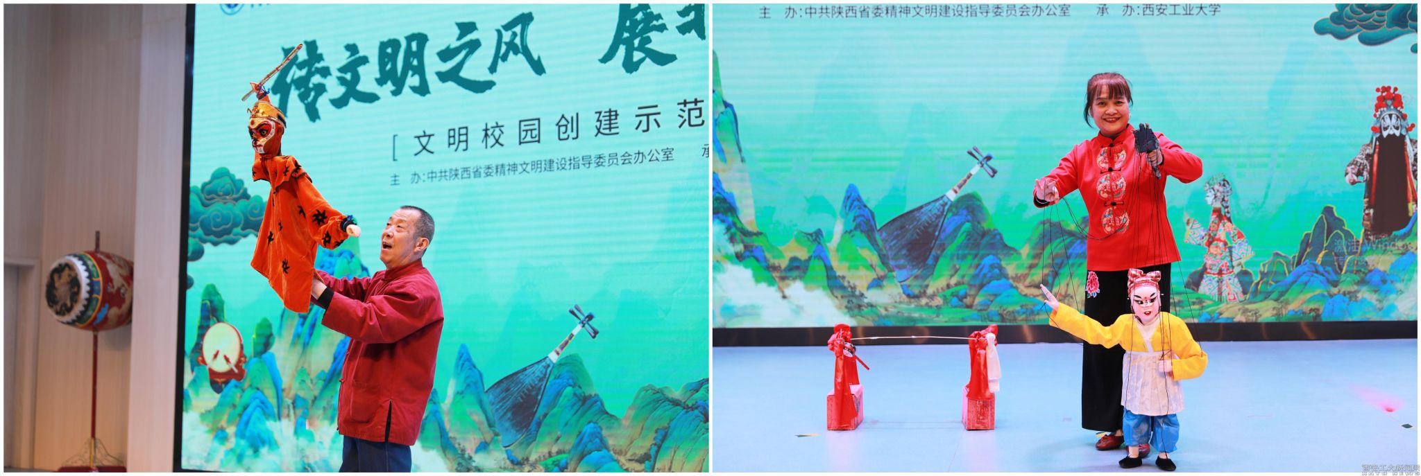 (本网讯)11月29日下午,由陕西省委文明办主办,【官网入口】星空体育登录页面,一键快速登录承办,商洛学院、陕西艺术职业学院、西安外事学院、碑林区文化馆协办的“传文明之风 展非遗魅力”文明校园创建示范活动,在未央校区双创楼报告厅举行。省委文明办主任贾琳,省委文明办创建指导处处长贺聪梅,省委文明办思想道德建设处一级主任科员周林,西安外事学院党委书记雷西合,未央区委常委、宣传部长王静及副部长何茹,我校党委书记刘卫国,党委副书记梁云鹤、马福出席展示活动。
