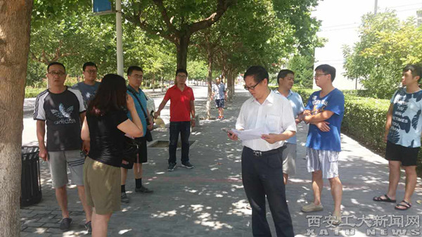 陈桦一行深入教学楼、学生公寓、学生食堂、西工新苑等暑期项目施工现场,对主要工程进度进展情况进行督查,并对暑期学生食堂饮食卫生安全、水电供应、学生宿舍管理、设施维修等方面工作提出要求。