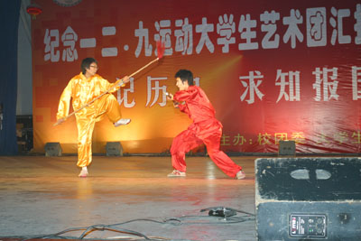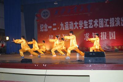 晚会上,由王晓燕老师和胡衍老师合唱的《走进新时代》将同学们从那个战火纷飞的时代带入21世纪日新月异的今天;乐队用《it’s my life》表达了当今大学生积极向上的生活态度;相声《我的大学生活》不仅给大家带来了阵阵欢笑,也引发了同学们的许多思考;器乐合奏《笑傲江湖》、街舞、歌曲串烧等节目,充分展现了我校大学生丰富多彩的大学生活以及同学们的多才多艺;精彩的武术表演更是让大家领略了我国传统文化的魅力,也博得了大家的热烈掌声。