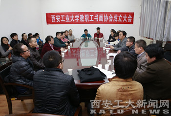 (本网讯)近日,我校教职工书画协会成立大会在金花校区召开。工会副主席朱晋中、庞秋红出席了大会,大会由朱晋中主持。