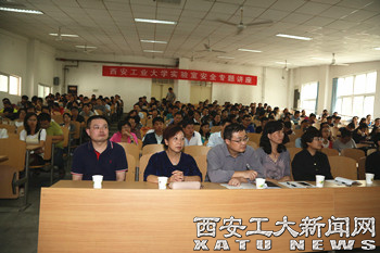 随后,未央区消防大队大队长段胜奇、材料与化工学院高级工程师陈山川、电子信息工程学院高级工程师师公社、国资处实验室管理科科长马颖,分别就消防安全、化学品安全、用电安全、实验室安防等问题做了讲座,并和到会实验老师、学生进行了交流。