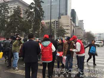 ——身体力行建和谐社会。我校光电、机电、理学院、体育等学院的志愿者们,走入浐灞湿地公园、大明宫国家遗址公园,走上街道,进入地铁站,深入社区、工地,与工作人员、环卫工人共同打扫街道、擦洗公共自行车、清除小广告,在地铁站引领乘客,用实际行动践行“为人民服务”。大学生志愿者协会与西安市公交六公司党委、莲湖区西华门交警支队在西华门十字等人流量较大的路口联合进行的 “人人争当好青年,规范行为好市民”的交通安全志愿服务活动和“阳光蒲公英”关爱农民工子女帮扶活动受到了社会各界的广泛关注和普遍认可,西安电视台《西安新闻》、西安教育台ETV栏目对活动进行了报道。