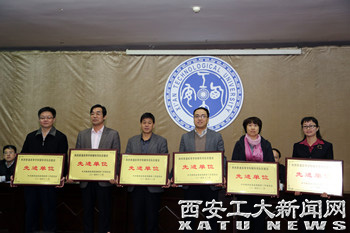 郭强宣读了表彰文件,与会领导为6所陕西高校辅导员队伍建设先进单位以及9所陕西高校志愿服务先进集体颁发了奖牌。