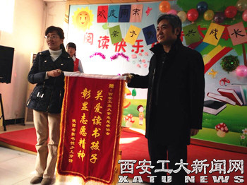 活动初始,陕西省图书馆副馆长张海翔代表陕西省图书馆少儿分馆为我校青年志愿者协会赠送了锦旗,向志愿服务活动表现突出的优秀大学生志愿者颁发了荣誉证书。校团委副书记张英致谢,她希望同学们能继续传承和发扬“奉献、友爱、互助、进步”的志愿服务精神,不断丰富服务内涵,在志愿服务中受教育,长才干。