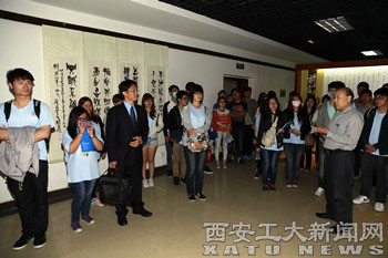 台湾师生一行在在图书馆二楼书法展馆聆听了常栓怀老师对刘自椟和陈泽秦两位书法大家的详细解读。我校艺术与传媒学院学生和台湾学生进行了书法互动。