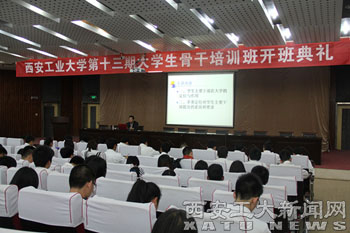(本网讯)我校第十三期大学生骨干培训班开学典礼3月25日在图书馆报告厅举行,校党委副书记丁养斌、校团委书记赵琼参加了本次开学典礼。