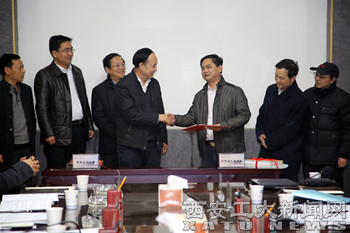 (本网讯)12月13日,我校与商洛市洛南县人民政府签署战略合作框架协议,拉开双方全面合作的序幕。这是我校和省内县级政府签署的第一个合作协议。洛南县人民政府县长刘明智,县委常委、统战部部长支朝奇,副县长汪昭斌,我校党委书记赛云秀,校长廉振民,副校长陈桦出席签字仪式。