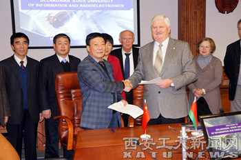 (本网讯)近期,应白俄罗斯国立信息与无线电电子大学邀请,校长廉振民陪同陕西省科技厅许春霞副厅长和国际交流处黄云良副处长对我校“中白合作研究基地”的外方研究基地——白俄罗斯国立信息与无线电电子大学进行了为期三天的访问。